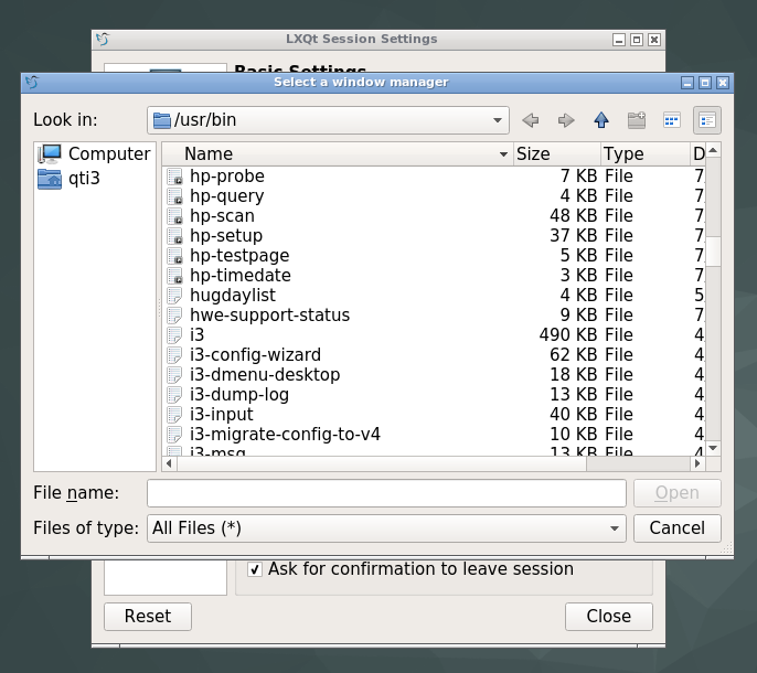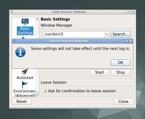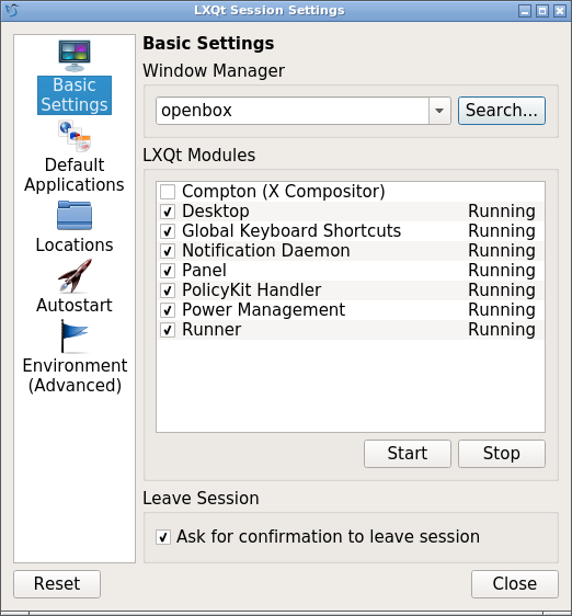 - Open LXQt Session Settings: Preferences >> LXQT Settings >> Session Settings